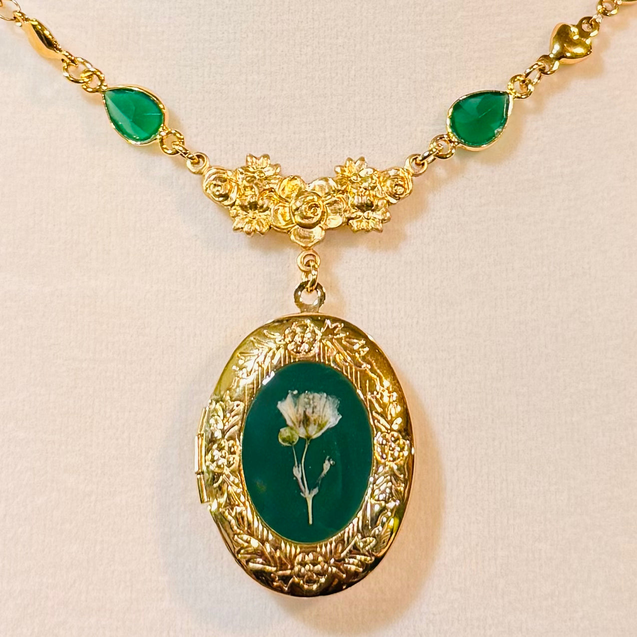 this piece contains real dried flowers , created with love and magic. gold oval-shaped locket glass charms. please keep in mind that these are all handmade using real flowers. colors and flower size/shape can vary from piece to piece. each piece is unique, no two will be exactly the same, only very very similar 🫶🏽