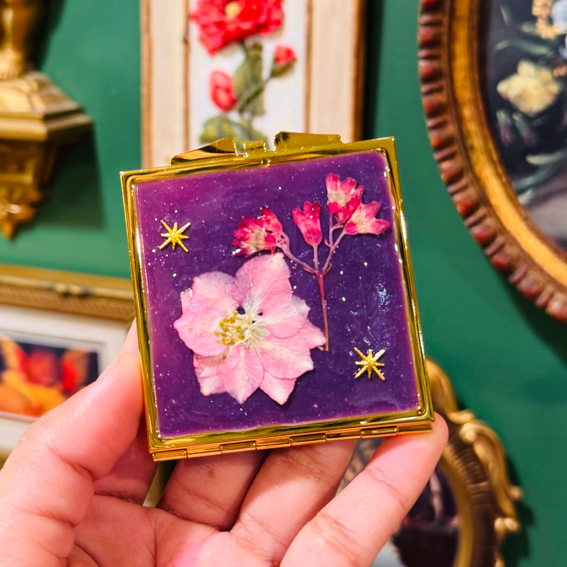 pocket mirror. two sides, one regular one 2x zoom. gold.