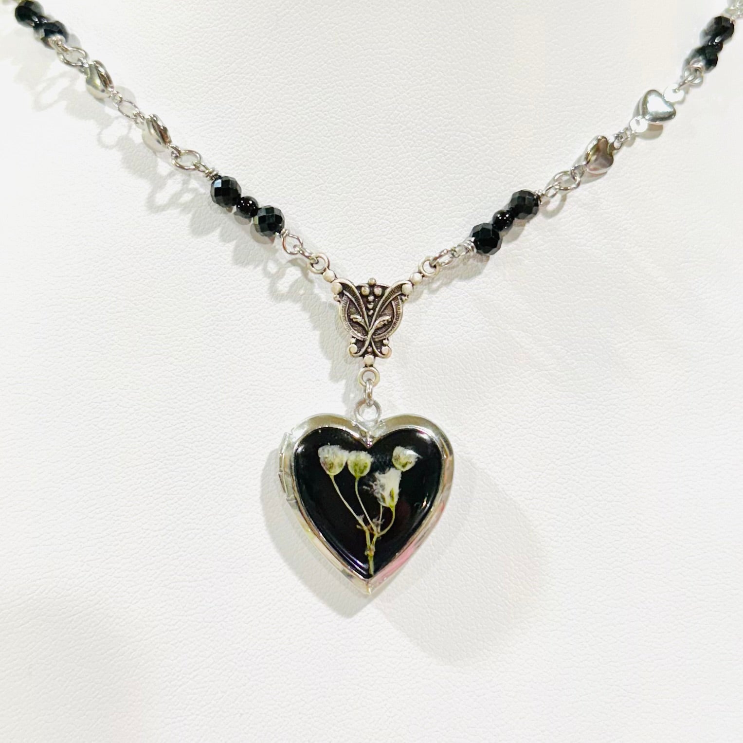this piece contains real dried flowers , created with love and magic. silver heart-shaped locket. please keep in mind that these are all handmade using real flowers. colors and flower size/shape can vary from piece to piece. each piece is unique, no two will be exactly the same, only very very similar 🫶🏽